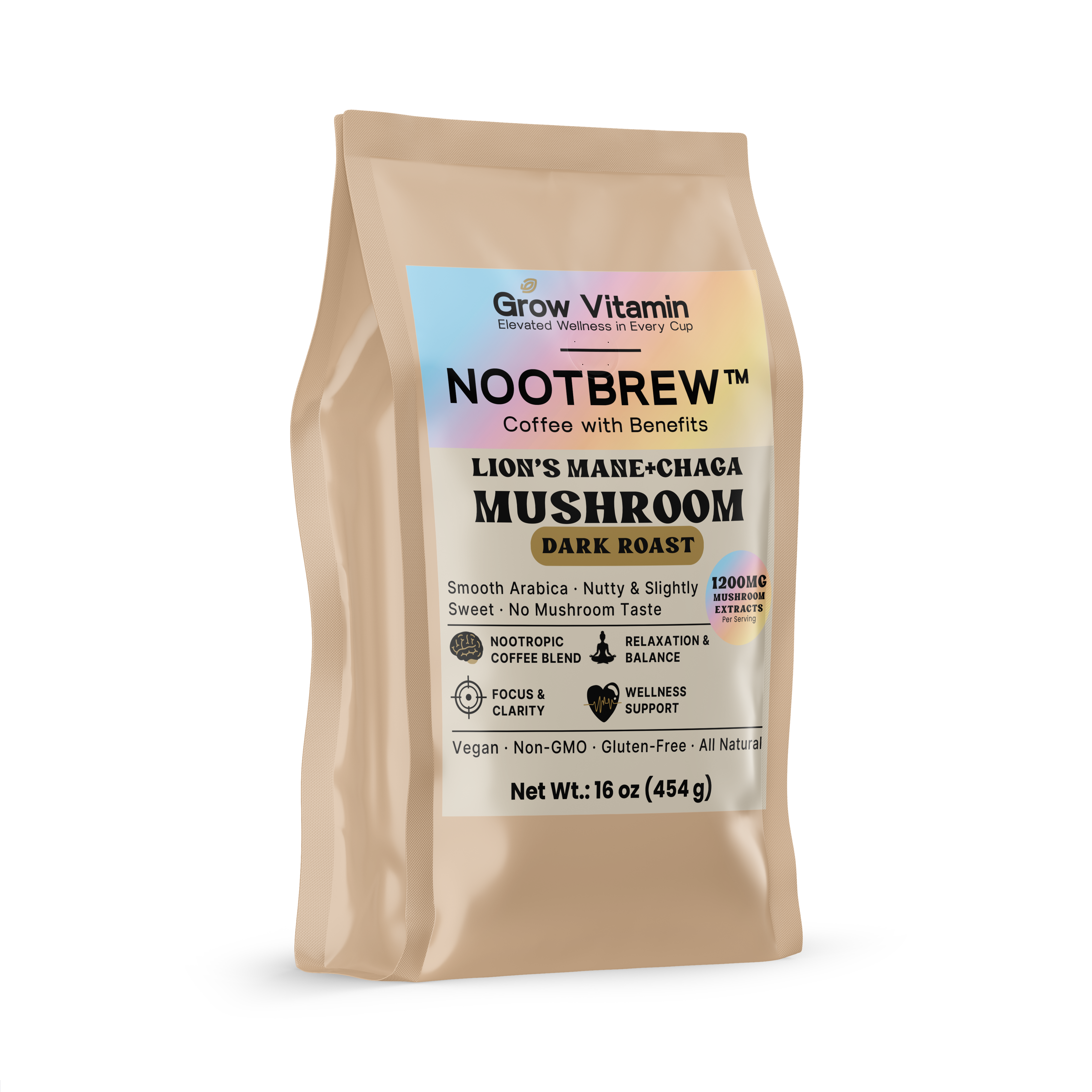 Our NootBrew™ Mushroom Coffee Fusion combines premium Arabica dark roast with Lion’s Mane and Chaga mushroom extracts. Each cup delivers smooth, rich flavor — no mushroom taste — while supporting focus, balance, and overall wellness. A daily ritual that’s both delicious and functional.
