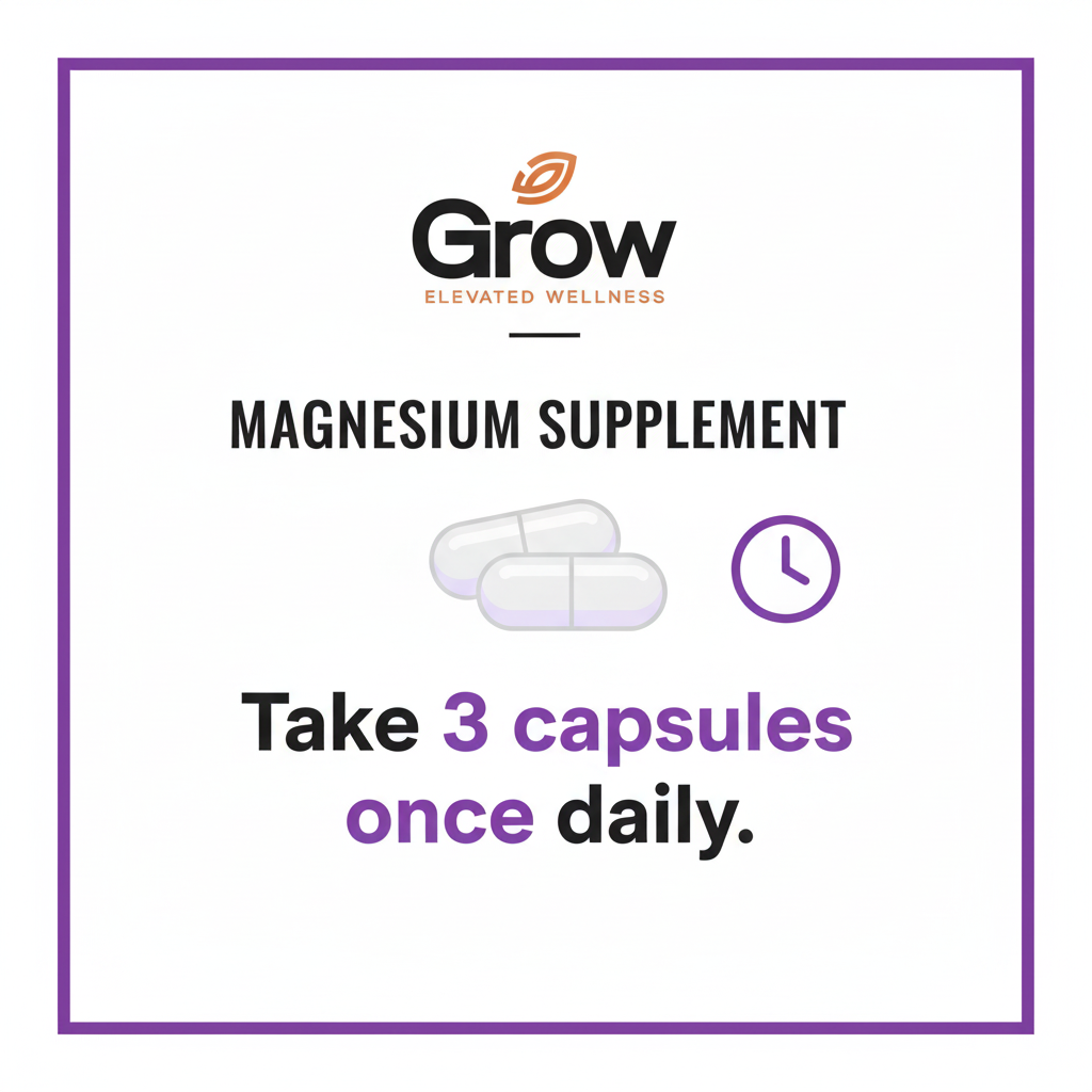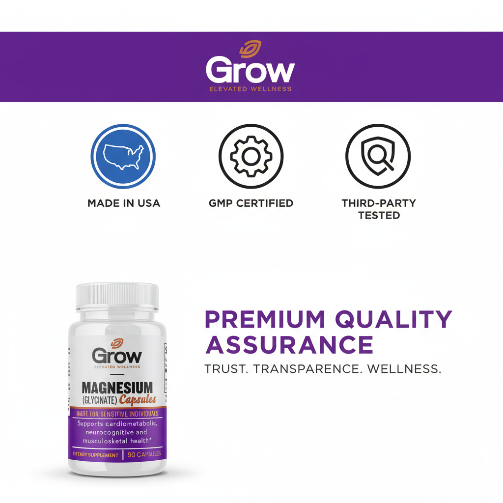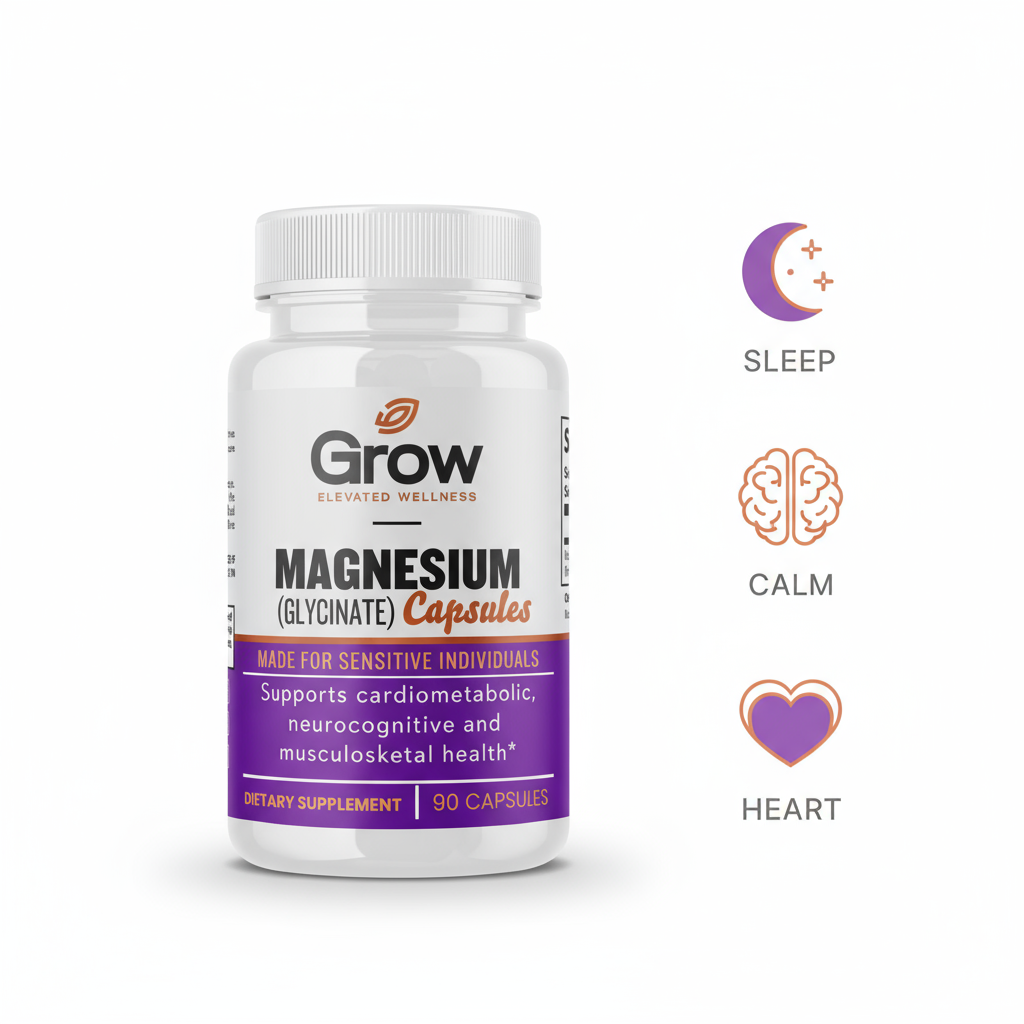 Grow Magnesium (Glycinate) Capsules are developed to align with our mission of elevated wellness. We focus on thoughtful formulations, transparent ingredients, and a clean label approach designed to support your health and lifestyle.