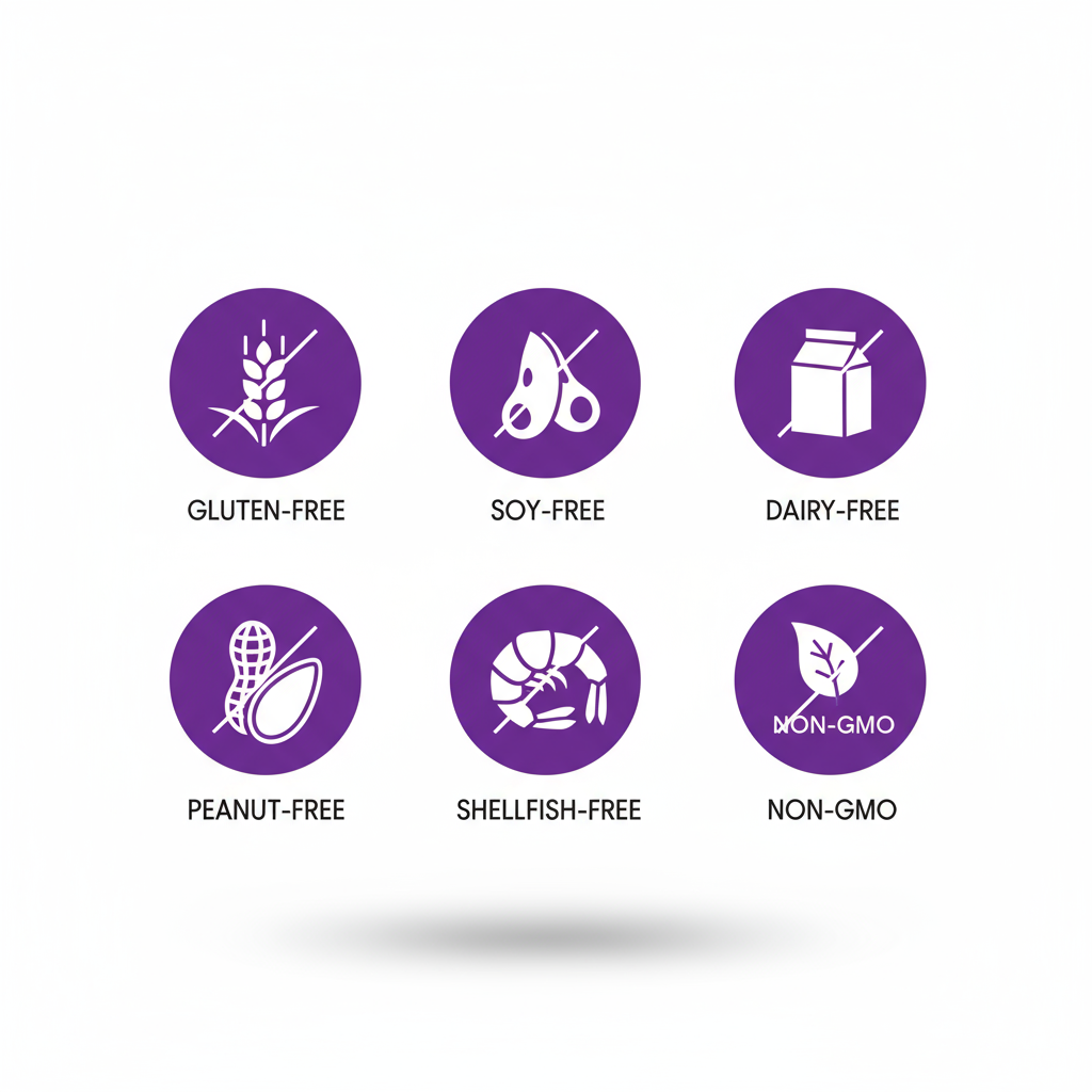 Crafted without common allergens such as gluten, dairy, soy, peanuts, and shellfish—ideal for those with sensitivities.