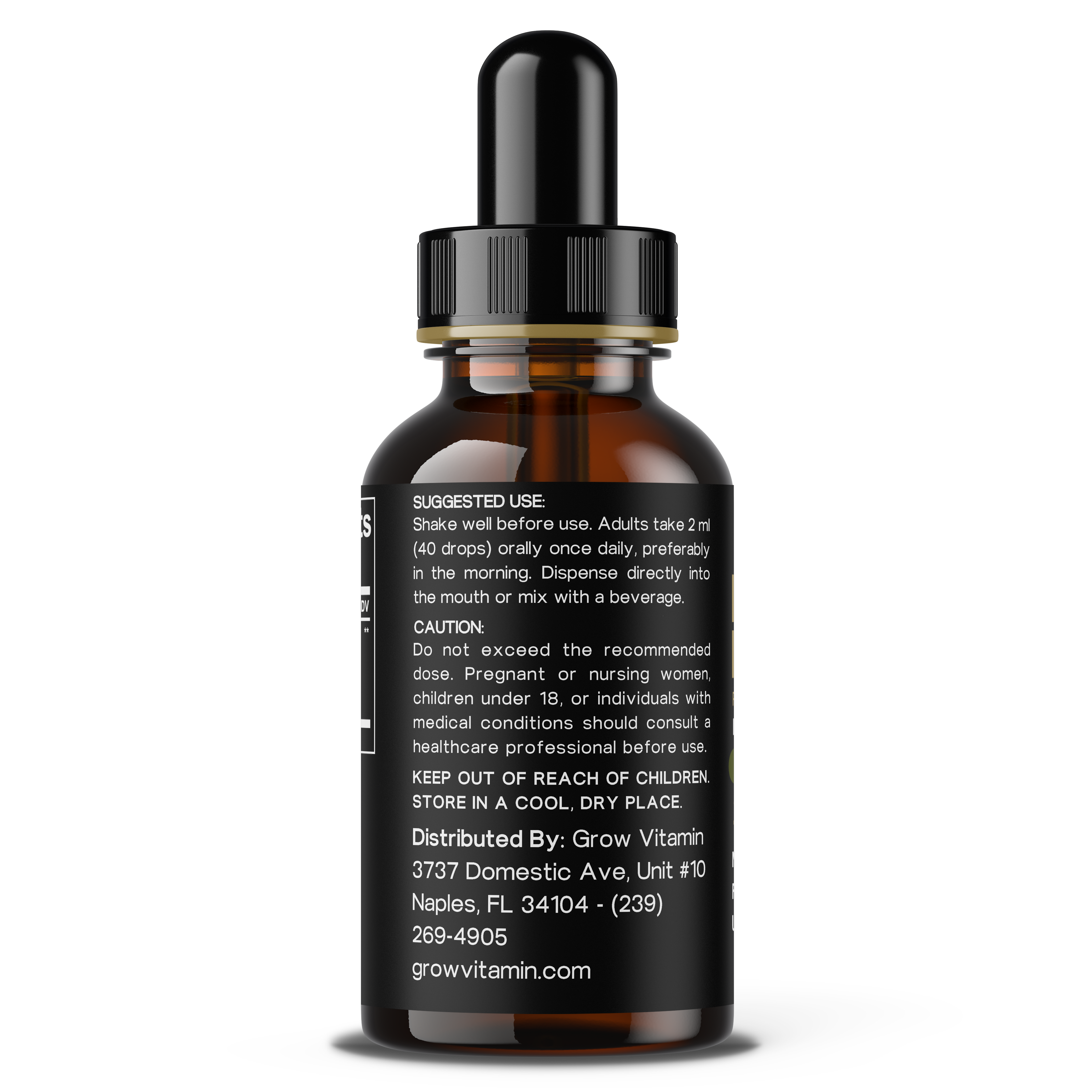 Grow Vitamin Lung Health Drops are formulated to support normal breathing, help keep airways feeling clear, and provide cooling, soothing respiratory comfort. Made with menthol, peppermint, mullein, lavender, and citrus oils in a clean, easy-to-use liquid format.