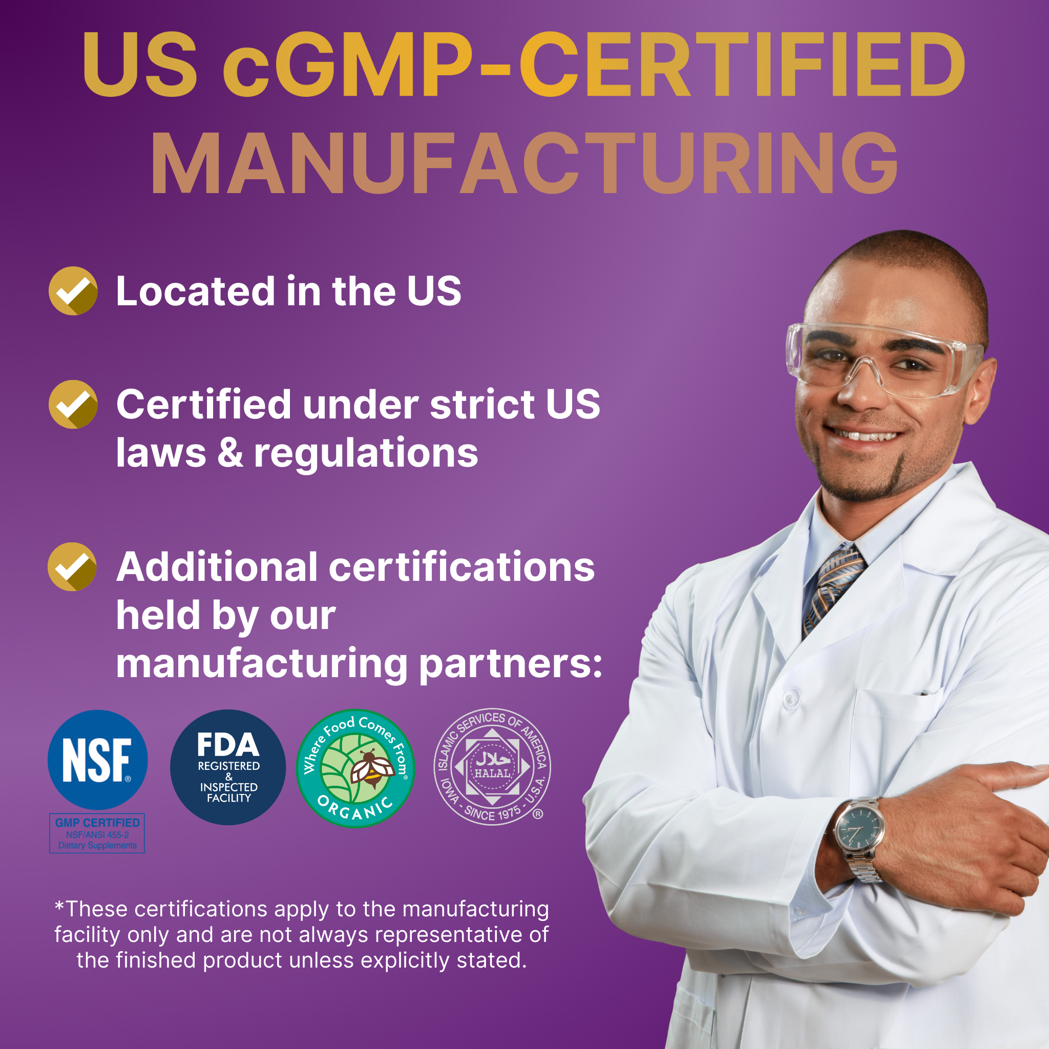 - Crafted in facilities that follow GMP (Good Manufacturing Practice) guidelines for quality.
