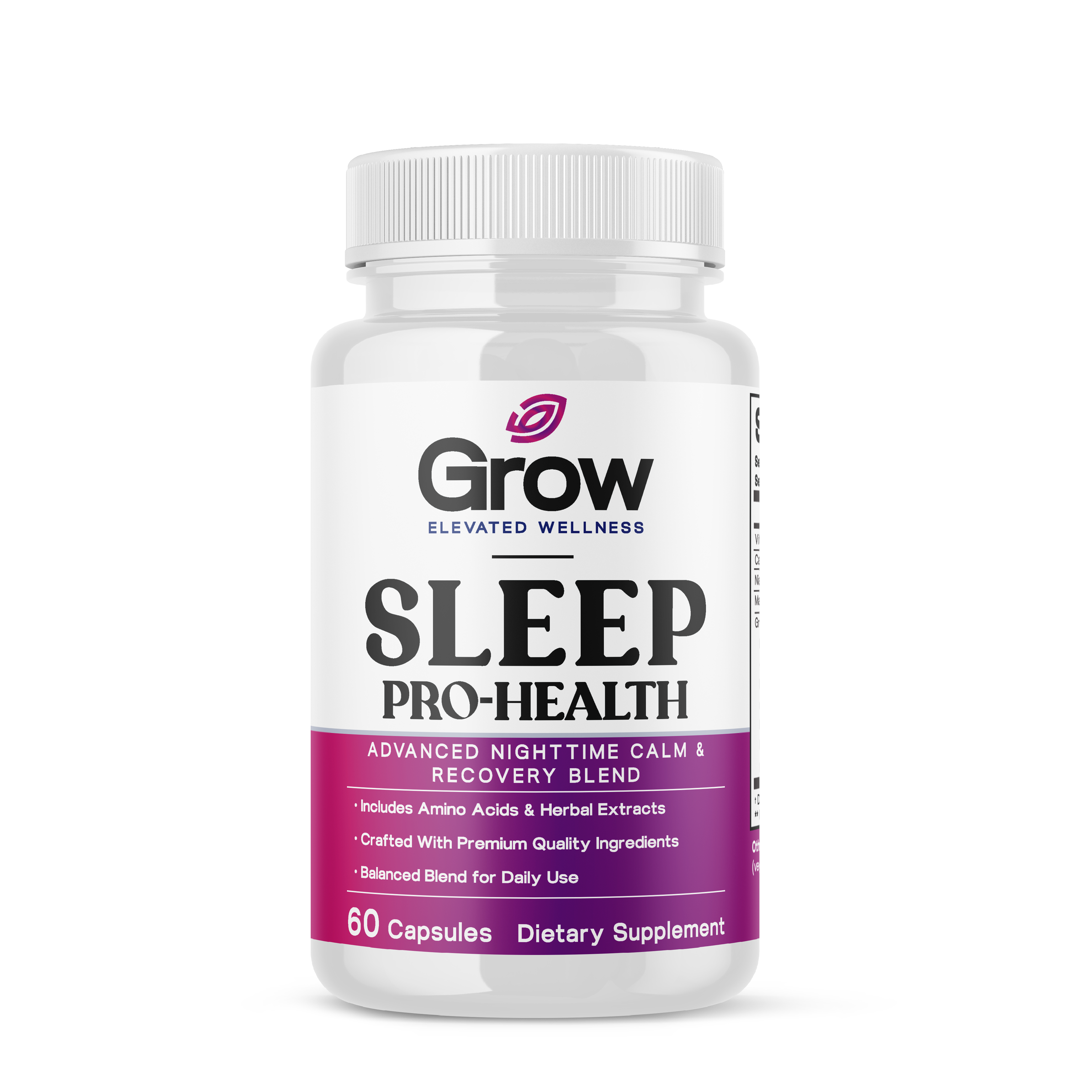 Grow SLEEP PRO-HEALTH is an advanced nighttime calm & recovery blend crafted with amino acids, herbal extracts, and key micronutrients to help you relax at night so you can show up refreshed the next day.*