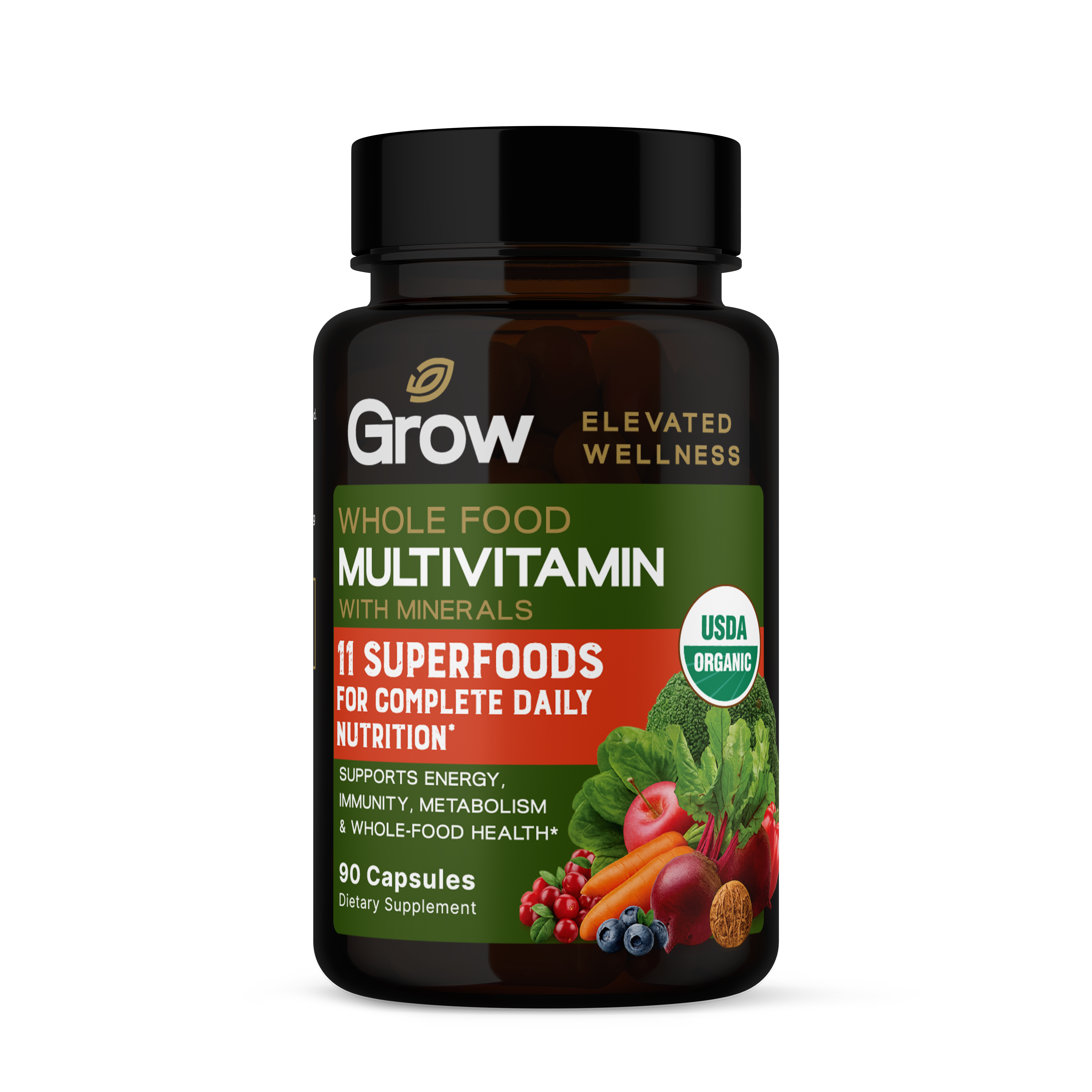 Grow Whole Food Multivitamin with Minerals delivers concentrated whole-food nutrition designed to support immunity, energy production, metabolism, and total body wellness. Formulated with a powerful blend of vitamins, minerals, superfoods, and advanced nutrient complexes, this daily supplement helps fuel your body with clean, effective nutrition.